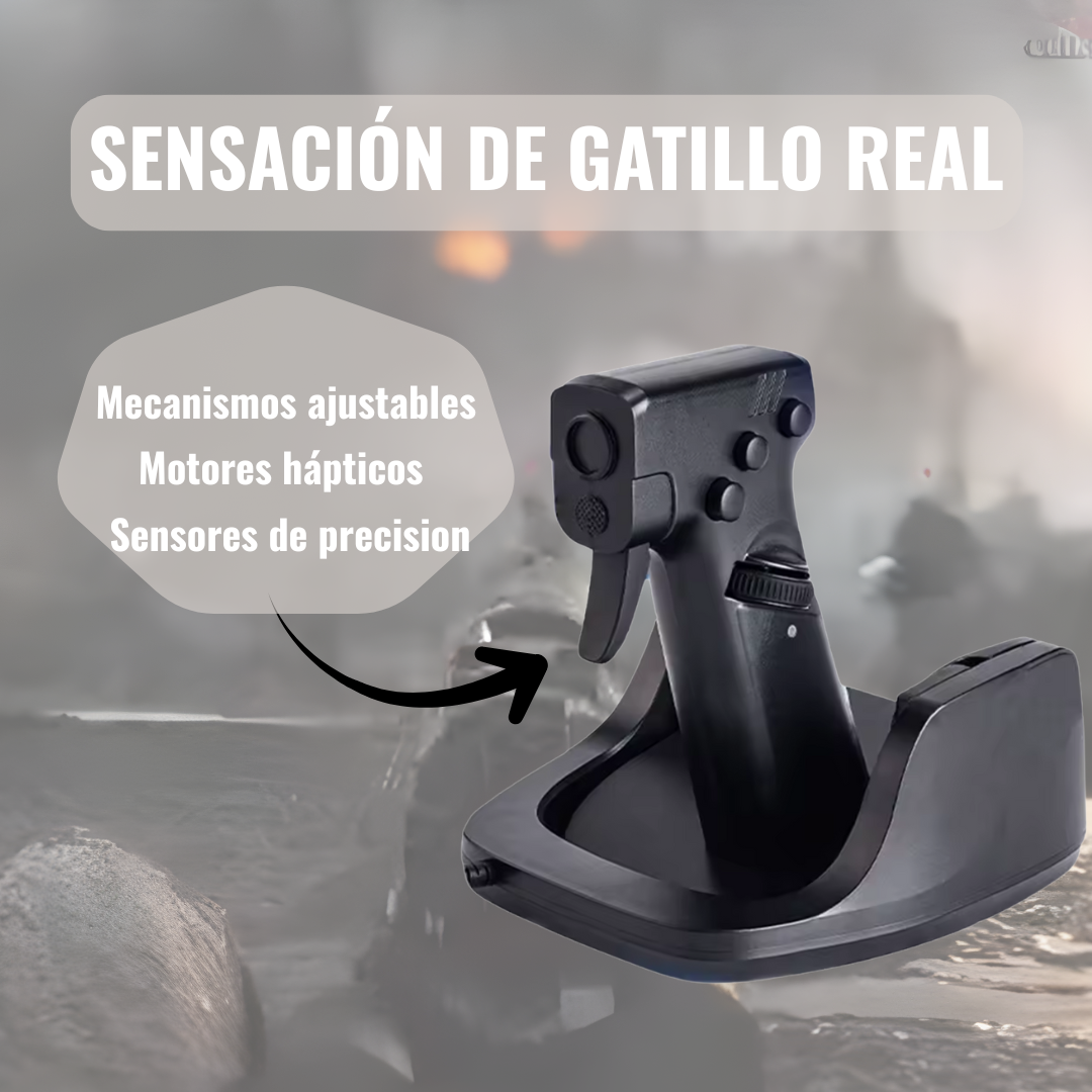 Su diseño ergonómico tipo pistola se adapta perfectamente a la mano, reduciendo la fatiga y permitiéndote jugar durante horas sin molestias.
